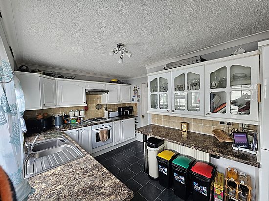 Kitchen: Gas Hob, electric oven, fridge freezer, washing machine,
